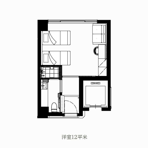 ※洋室12平米とバリアフリールームにはバスタブがありません。